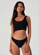 Our classic and bestselling style is finally available in black due to high demand. You have been asking for this so here it is, the bottom that will go so well with everything. It's simple and versatile and wear it the way you want. Either on your waist for that high cut look, or let it sit on your hips for a different feel.