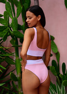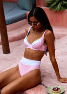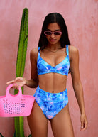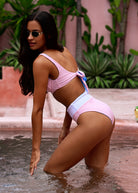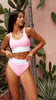 With its dreamy blue floral print and pops of pink, this might just be your new favorite flower pattern bikini! Oh and of course it’s reversible! Flip it over, and you've got a classic cotton candy pink with white band that brings out your sunkissed glow.